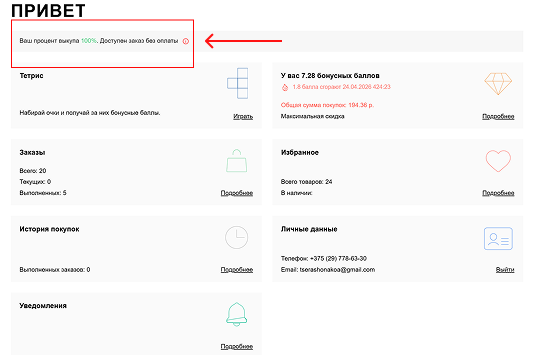 Если процент выкупа заказов составляет более 70%, бронирование товаров онлайн доступно без предварительной онлайн-оплаты.
